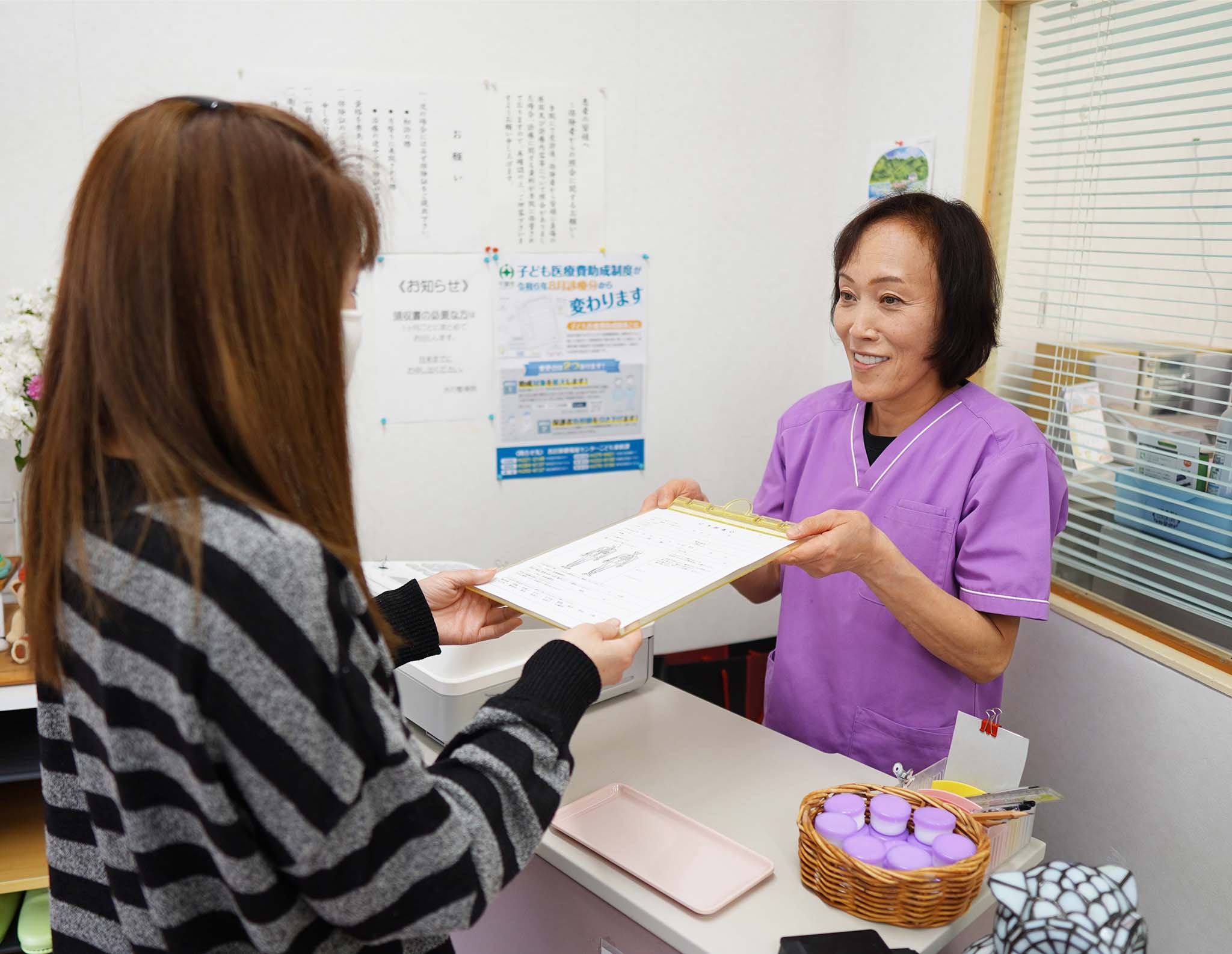 ご来院いただきましたら、まずは受付で問診票をご記入いただきます。