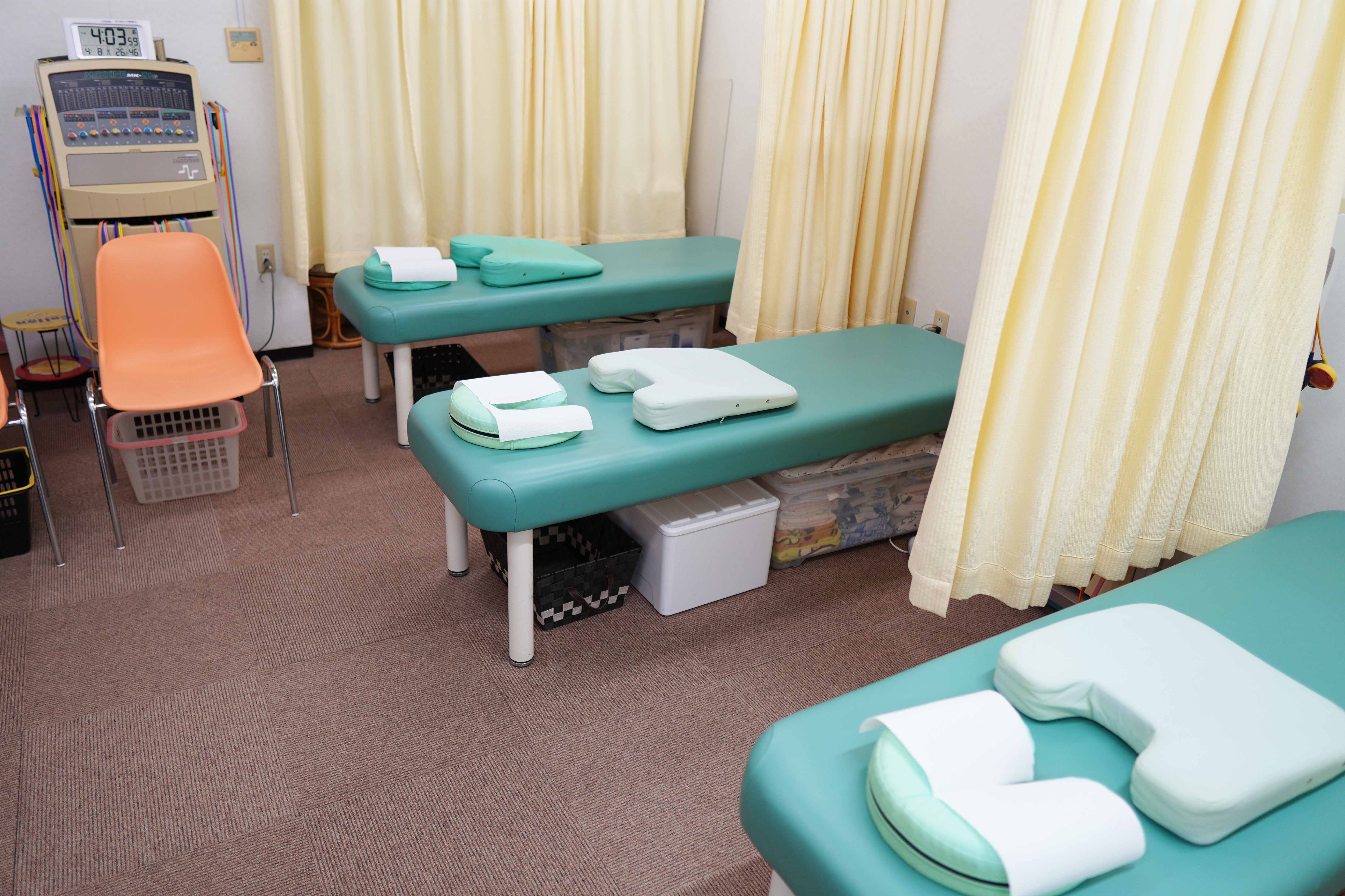 施術スペースはカーテンで仕切られた半個室になっており、プライバシーに配慮した安心の環境です。